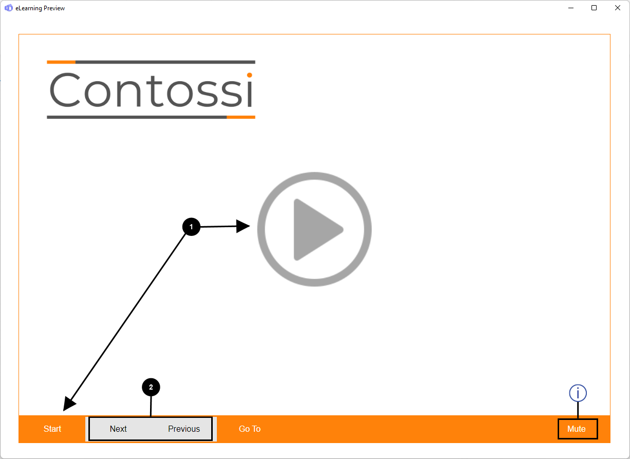 You can start the eLearning by clicking one of these buttons. Clicking Start in the bottom bar at any point throughout the presentation will restart it