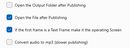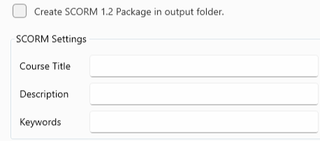 If you are deploying this eLearning to a LMS you can check this box and fill in the information to have the output contain a deployable scormfile.zip in the published folder that you can upload to your LMS. This has no effect on Preview