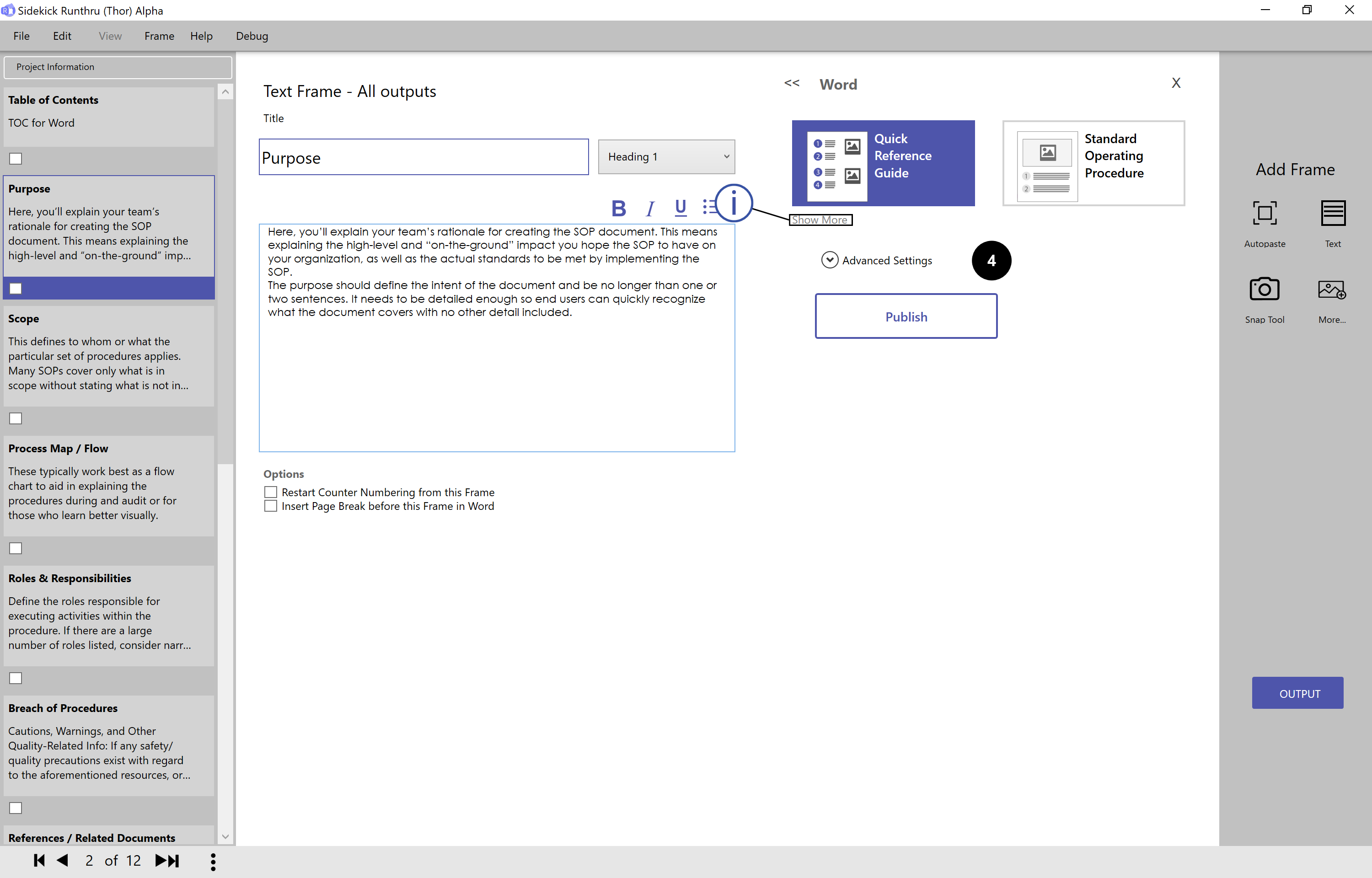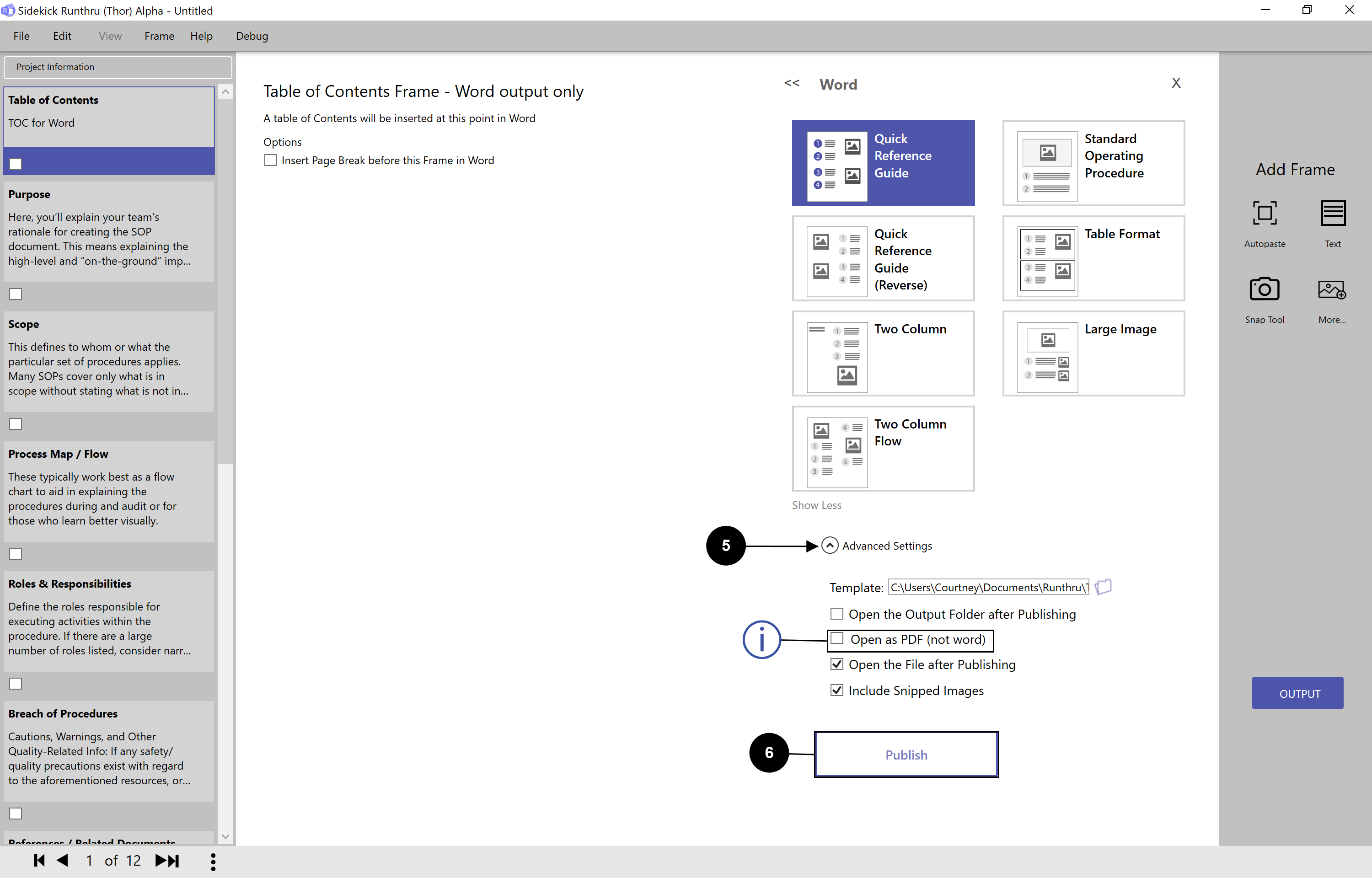 Clicking on Advanced Settings will reveal options you can configure for the Word output