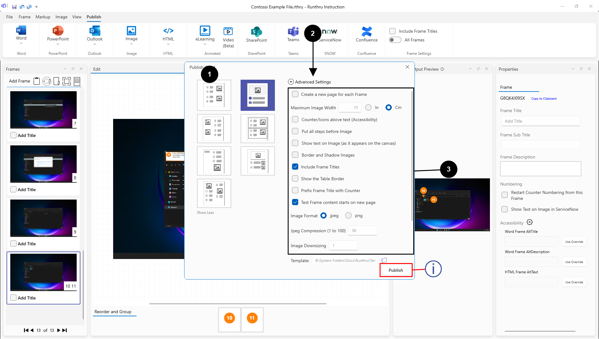 Clicking the Publish button will your file to PowerPoint using your settings above