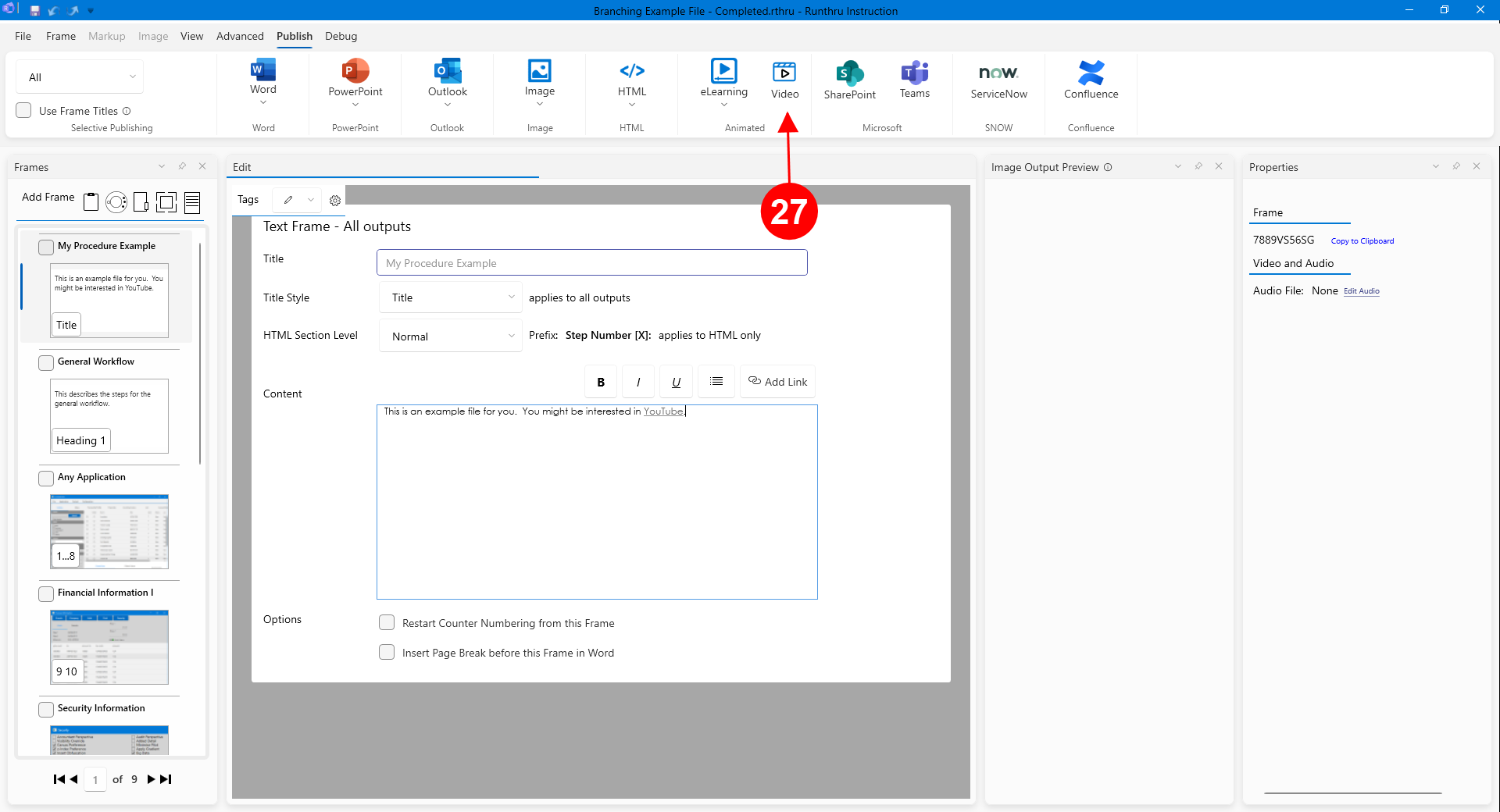 In this image you can see that Step 5 includes an optional link to Step 7. Using this text in a video will only be of limited assistance to the viewer and could be a difficult activity to find the referenced step.