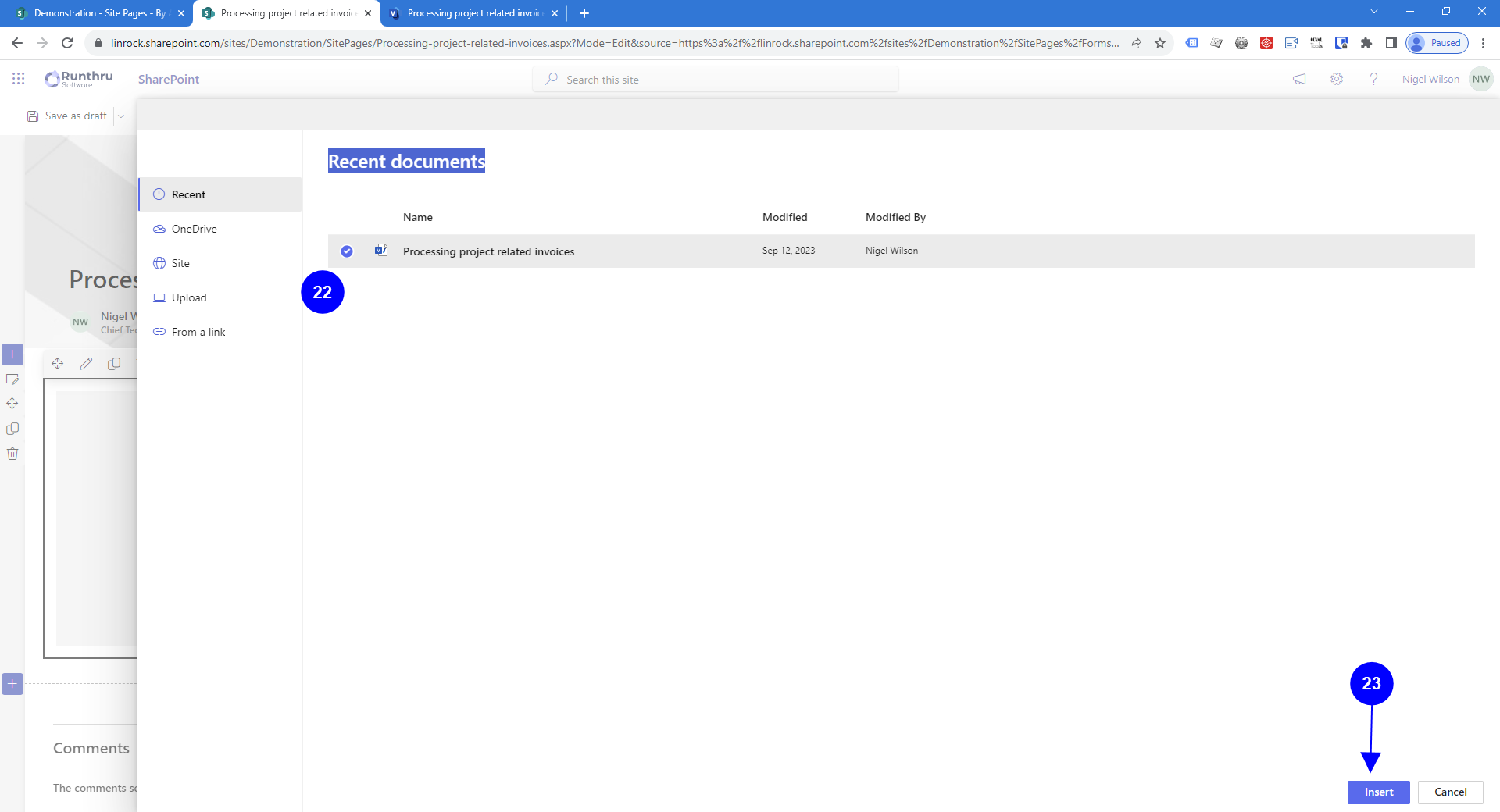 Once selected, the Insert button becomes active. Press the Insert button to continue.