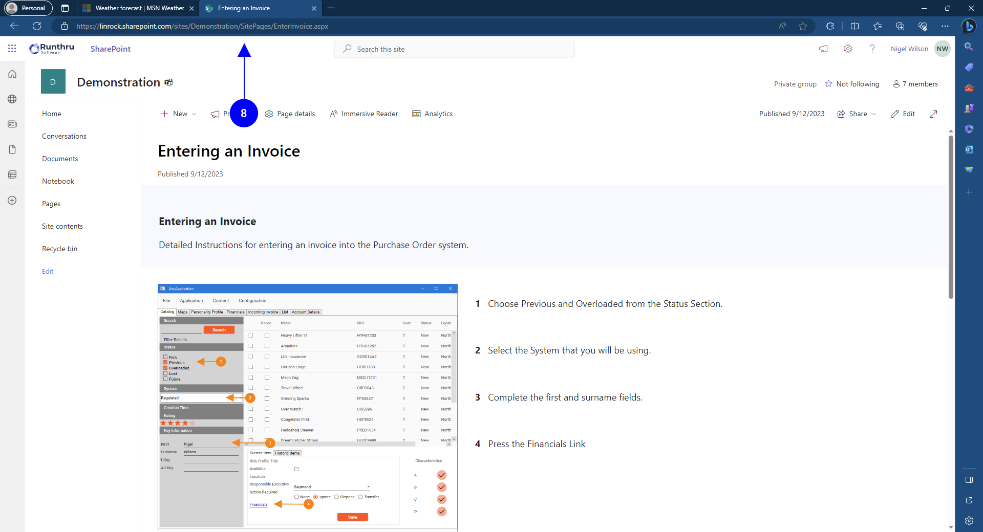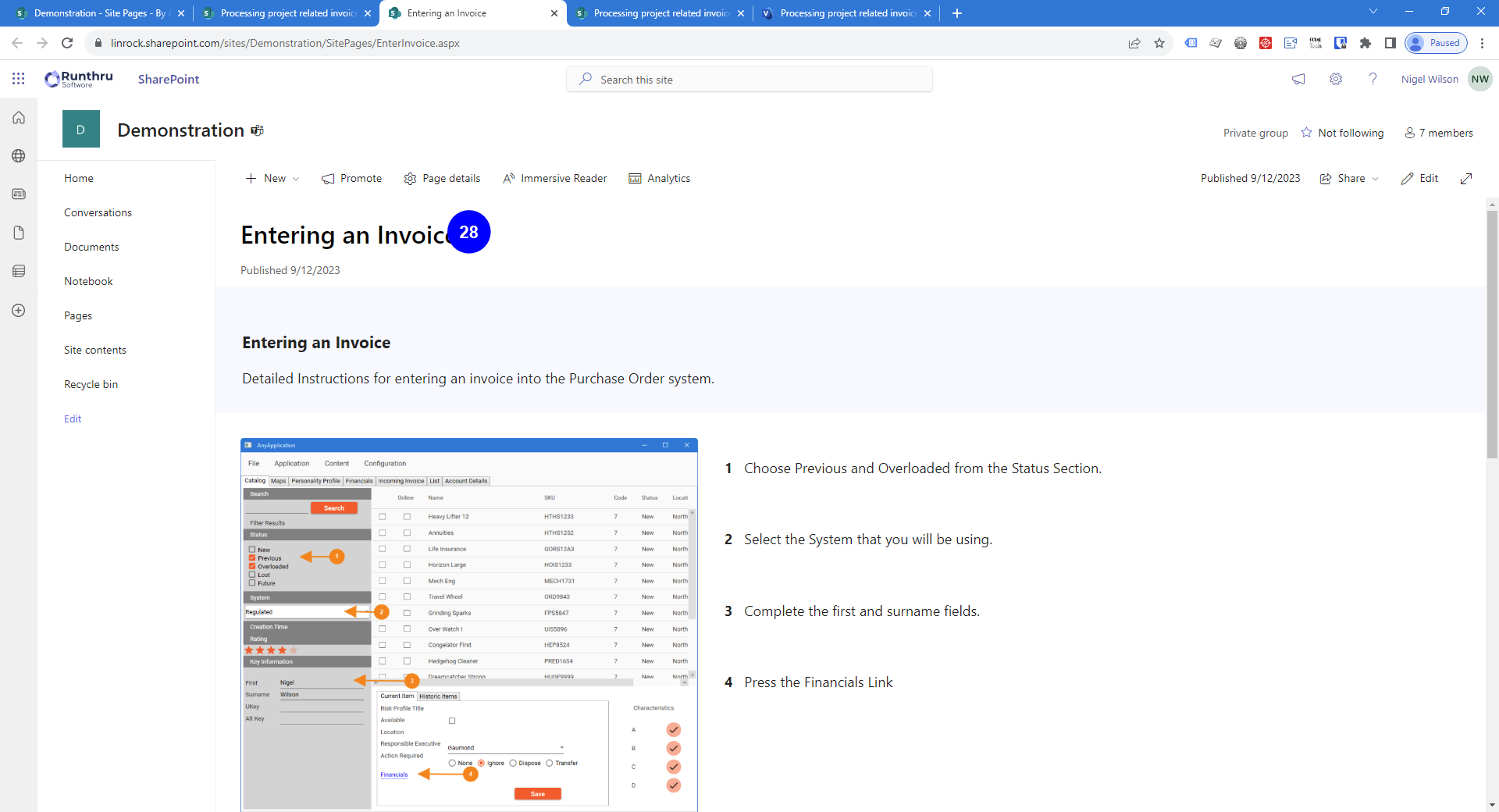 We start with a Runthru Instruction file entitled Entering an Invoice.