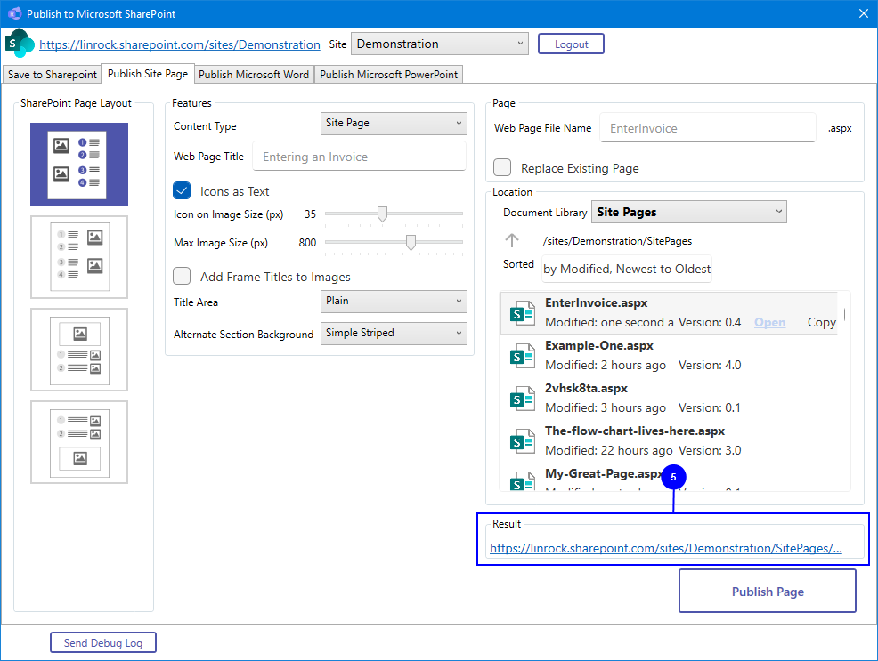 Once the creation of the SharePoint page is complete, you can click this link to show the new page.
